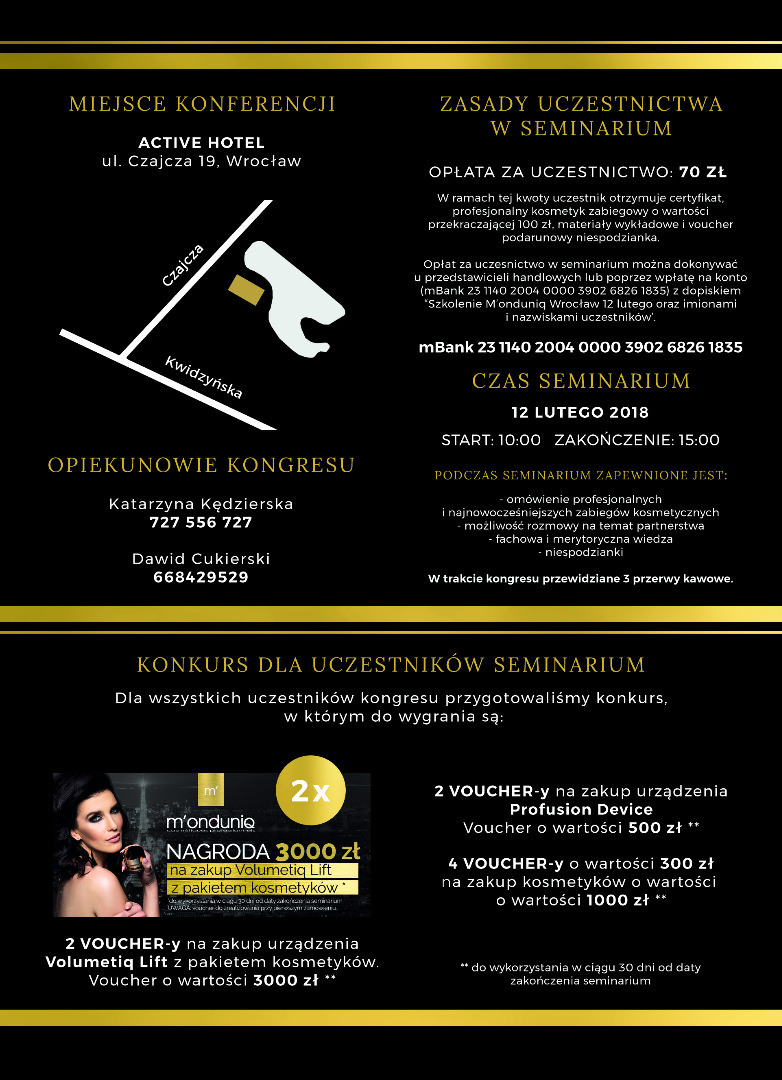 Seminarium poświęcone będzie tematyce zastosowania nanokrystalicznej technologii w zabiegach Volumetycznych VOLUMETIQ lift. Ze zwróceniem szczególnej uwagi na Volumetyczny zabieg wyszczuplający, czyli prawdziwy hit nadchodzącego lata oraz Volumetyczny lifting twarzy w technologii nanokrystalicznej. Zapraszamy wszystkich Klientów i Kontrahentów do udziału w naszym seminarium, które odbędzie się 12 lutego 2018 roku w Active Hotel we Wrocławiu. Wszelkie informacje dotyczące seminarium prezentujemy na załączonej grafice.